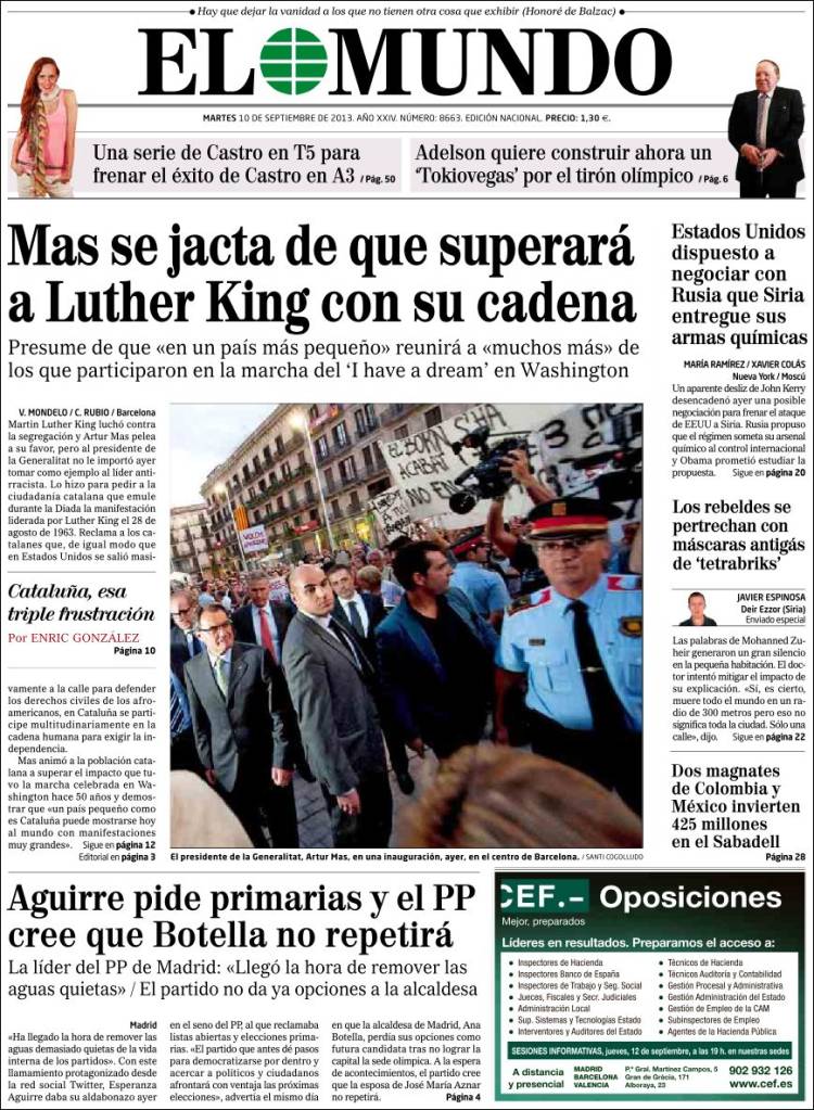 - De los Cobos criticó el “desprecio” de los catalanes hacia la cultura española. (EL PAIS)