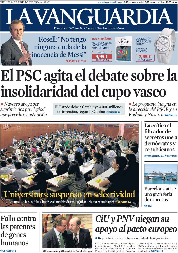 - Cataluña. Un nuevo error en las preguntas de la selectividad indigna a los estudiantes. (EL PAÍS, LA VANGUARDIA, ABC)