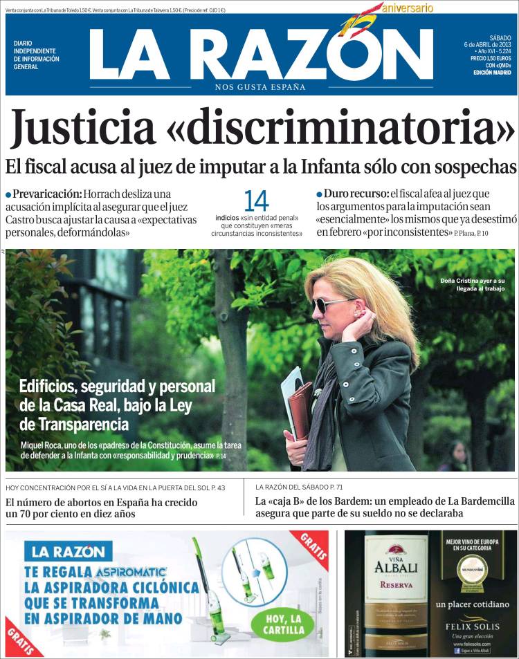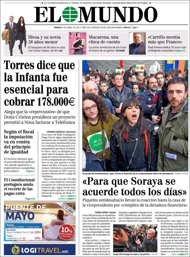 Portadas de los principales periódicos de la prensa nacional 6-4-2013.