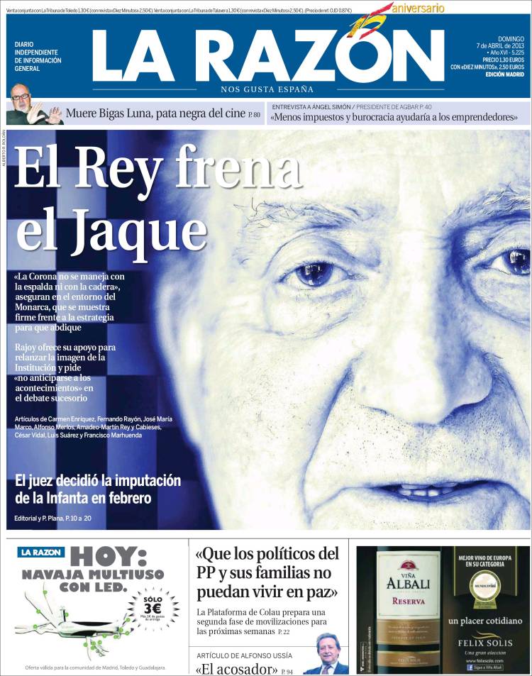 Portadas de los principales periódicos de la prensa nacional 7-4-2013.