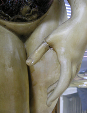 Se trata de una pieza que representa a tamaño natural el cuerpo de una mujer en la que está representada la disección de ambas glándulas mamarias, la derecha disección superficial y la izquierda superficial y profunda. Además se representa la vascularización de las vísceras abdominales.