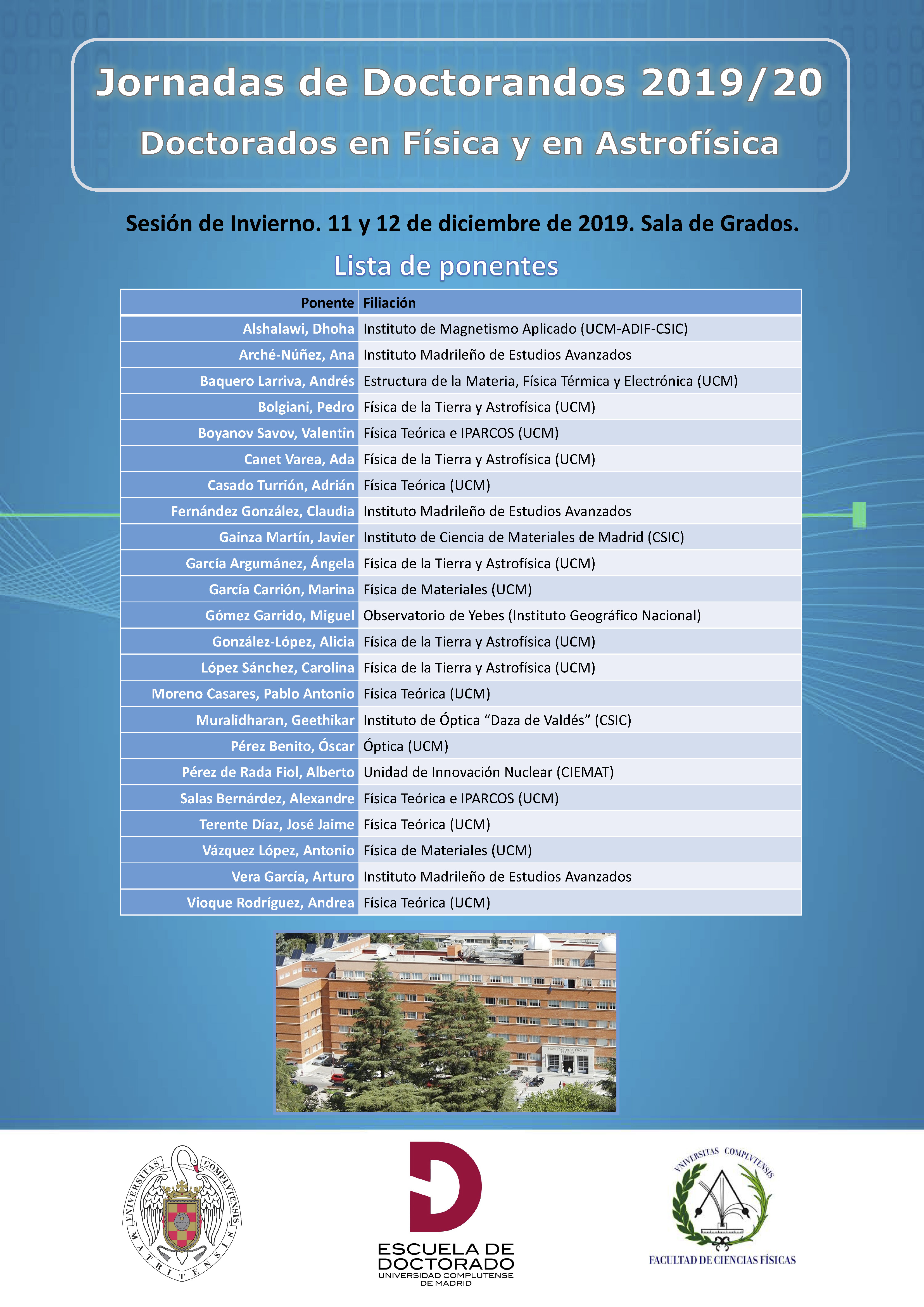 Jornadas conjuntas de los programas de Doctorado en Física y en Astrofísica, Facultad de CC Físicas.