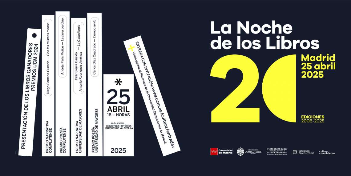 Enmarcada en la Noche de los Libros que tendrá lugar el próximo 25 de abril en Madrid, tendrá lugar la presentación de los cuatro Premios Complutense de Literatura tanto de narrativa como de poesía.