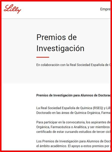Premios de Investigación Lilly April 2025 9 abr 2025 - 13:09 CETPremios de Investigación Lilly En colaboración con la Real Sociedad Española de Química. Volver »