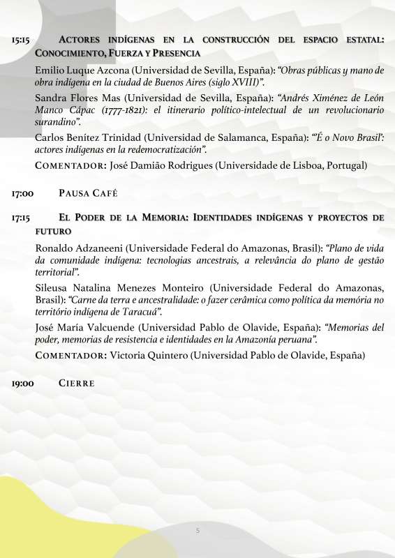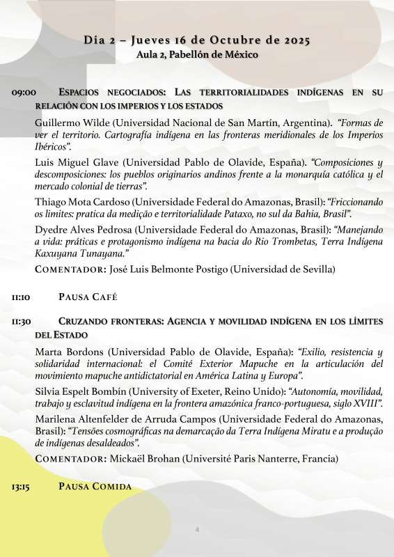 Dentro de las actividades que realiza el personal de la Unidad docente de Historia de América en colaboración con otras universidades se presenta el Congreso: Espacios, Territorialidades y Políticas Indígenas en los confines de Imperios y Estados que se realizará entre los días 15 a 17 de octubre en Sevilla, en el Aula 2 del Pabellón de México (15 y 16 de octubre) y en el Aula XXX de la Facultad de Geografía e Historia de la Universidad de Sevilla (17 de octubre).