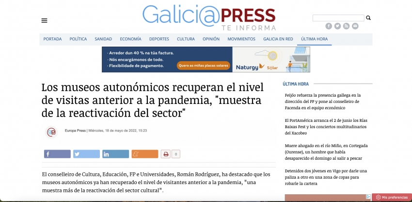 Medio: Cultura de Galicia Fecha: 18 de mayo de 2022