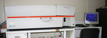LSR I (Becton Dickinson): citómetro de flujo de sobremesa que puede medir simultáneamente Forward Scatter (dispersión frontal), Side Scatter (dispersión lateral) y 6 fluorescencias.