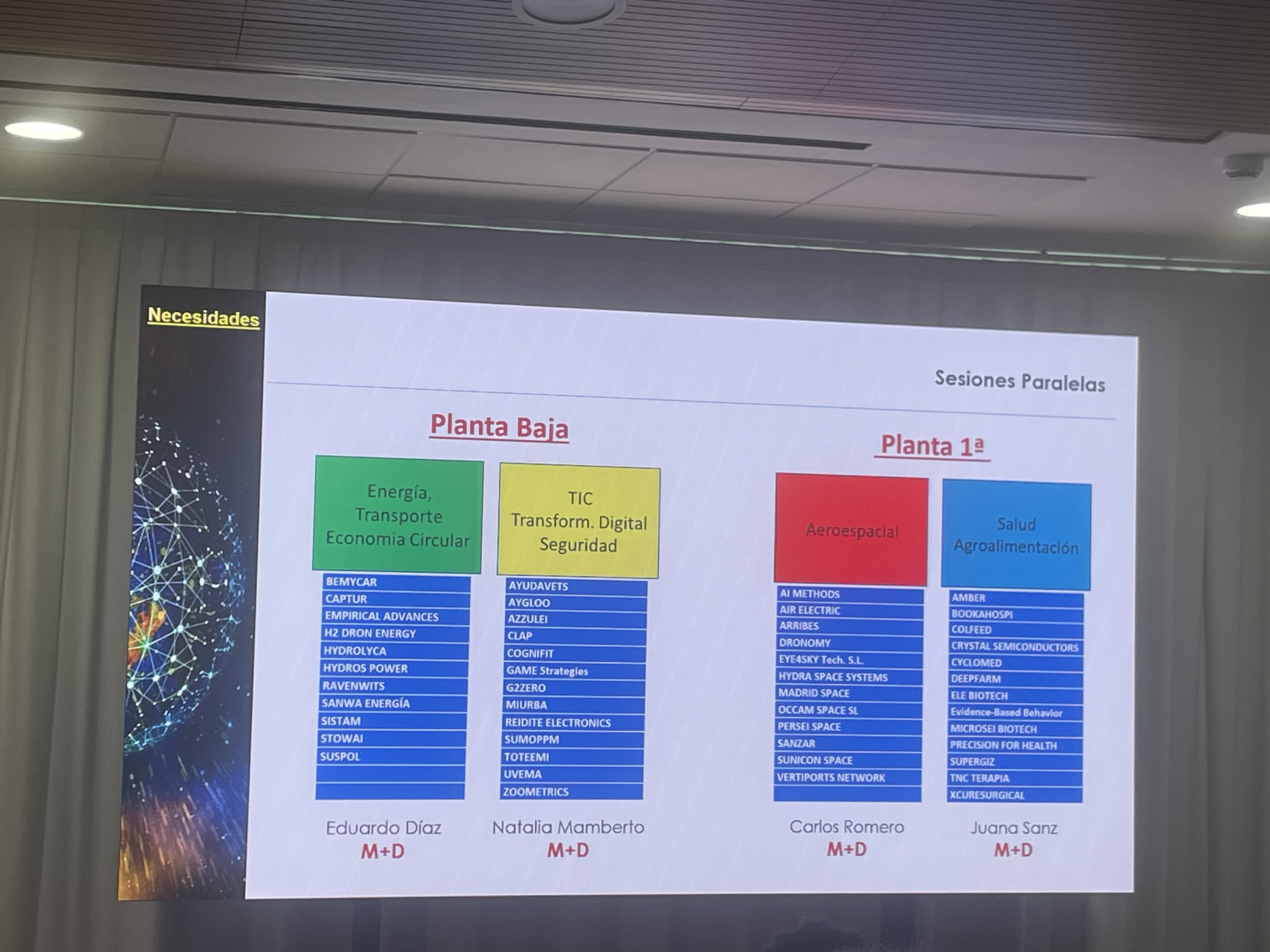 Durante el evento, startups de diferentes ámbitos, tres de ellas Compluemprendedoras, presentaron sus proyectos a los empresarios dividiéndolo en cuatro sectores de actividad.
