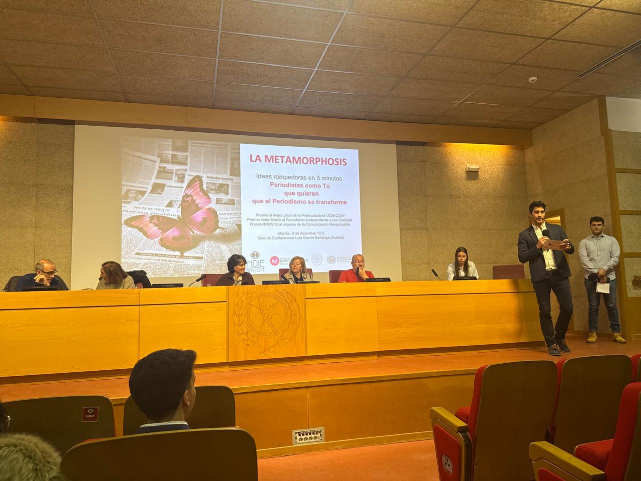 La Preincubadora Metamorphosis de la Facultad de Ciencias de la Información celebró el 9 de diciembre de 2025 el I Concurso de Pitch en 3 Minutos, una iniciativa clave para fomentar la innovación y el emprendimiento en el ámbito del periodismo. El evento reunió a doce equipos de estudiantes, quienes presentaron proyectos vinculados a la creación de nuevos formatos informativos, la comunicación responsable y el periodismo independiente.
