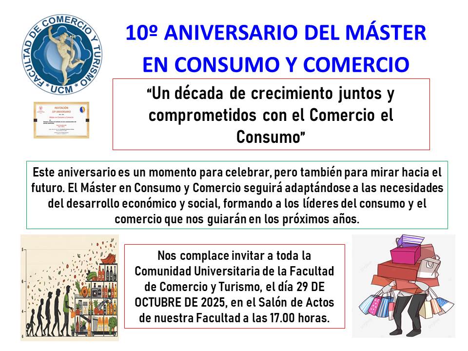 CEREMONIA 10º ANIVERSARIO DEL MÁSTER EN CONSUMO Y COMERCIO (29-10-2025) A LAS 17:00 HORAS.