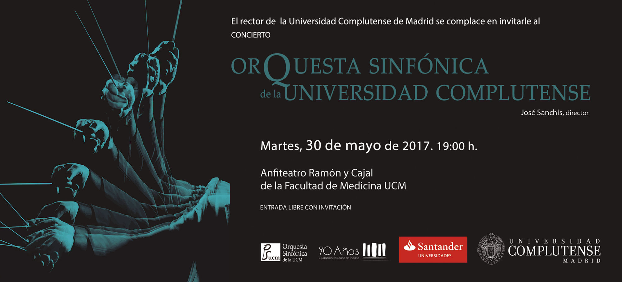 Concierto de Navidad de la Orquesta Sinfónica de la Universidad Complutense. Anfiteatro Ramón y Cajal, Facultad de Medicina.12 junio 2014, 19:30h.