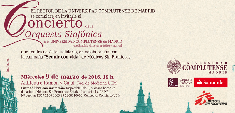 EL RECTOR DE LA UNIVERSIDAD COMPLUTENSE DE MADRID se complace en invitarle al Concierto de la Orquesta Sinfónica