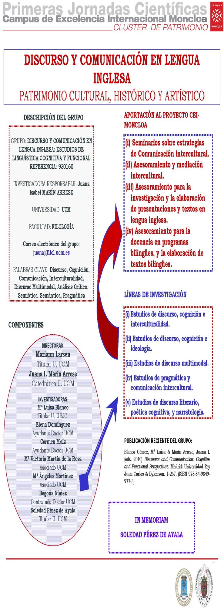 The research group 'Discourse and Communication in English: Studies in Cognitive and Functional Linguistics' (DISCOM-COGFUNC) is a UCM consolidated group, which was recently evaluated and graded as Excellent by the Spanish Agencia Estatal de Investigación.