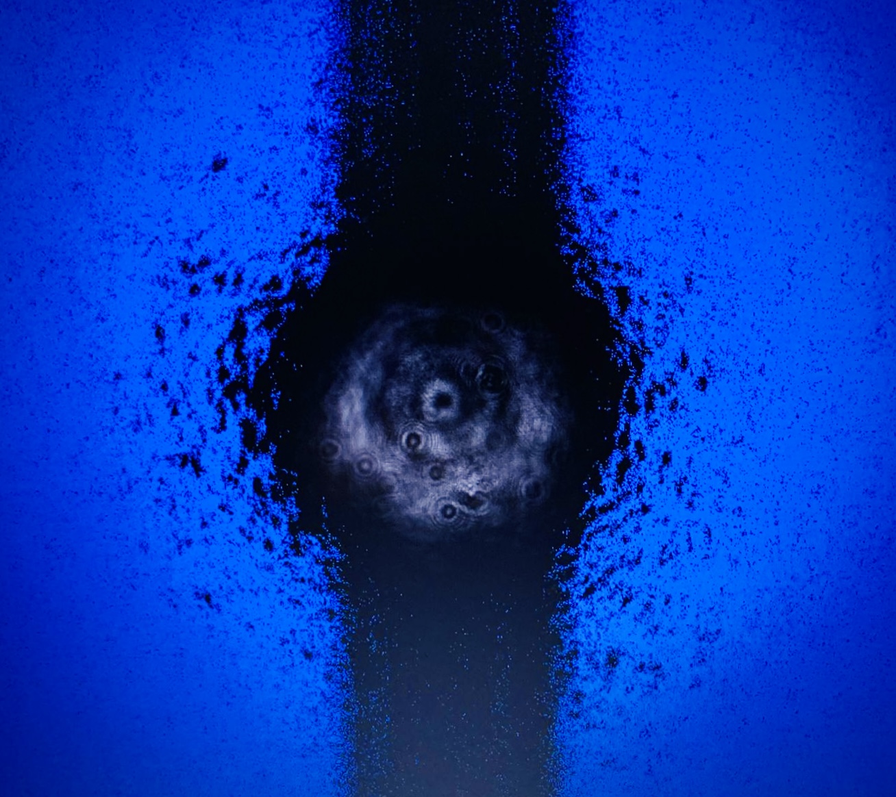 El segundo galardón ha sido para Corpúsculos del caos, realizada por Jorge Barrios González e Irache Güemes Fernández. De esta imagen, el jurado destaca que la simetría visual aporta un gran equilibrio, así como que “el uso del color resulta muy interesante y es capaz de generar intriga partiendo de formas abstractas, mientras que la verticalidad del centro dialoga con las formas radiales superpuestas, dando la sensación casi de movimiento visual”.