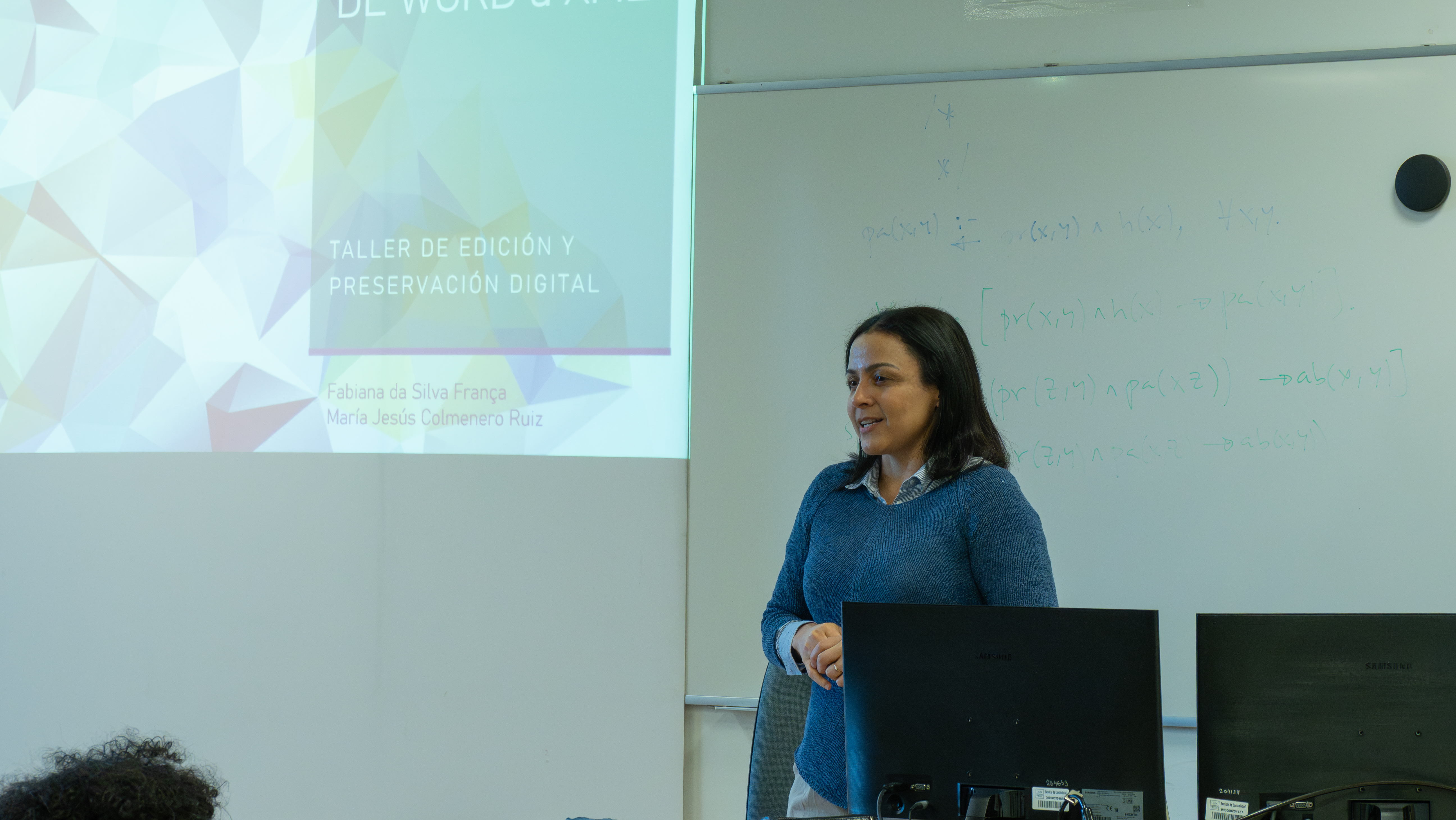 Por la tarde tuvo lugar el taller Del Word al XML: taller práctico de edición y preservación digital, impartido por María Jesús Colmenero y Fabiana França, integrantes del Grupo de Investigación Información, Biblioteca y Sociedad – BISOC, de la Facultad de Ciencias de la Documentación de la Universidad Complutense de Madrid.
