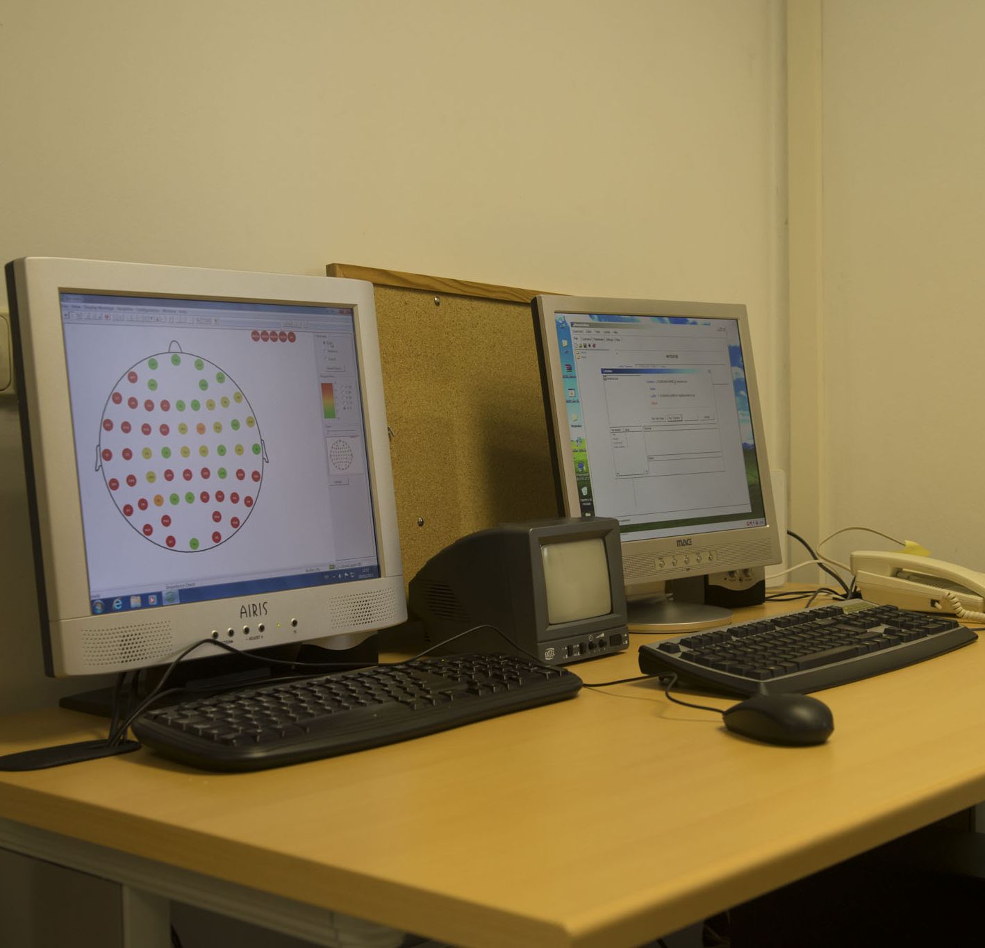 The NeuroKnowledge Lab houses one electrically shielded experimental room equipped with a 64-channel BrainAmp® amplifiers device and a set of electrodes that can be arranged on EasyCaps® (different sizes are available).
