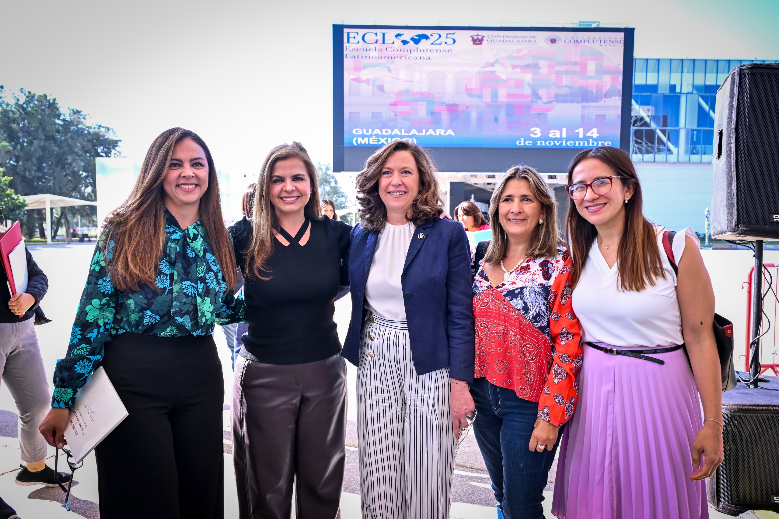El acto de apertura contó con la participación de Valeria Padilla, Coordinadora de Internacionalización de la Universidad de Guadalajara; Marisa Ramos Rollón, directora de la Escuela Complutense Latinoamericana; Begoña García Greciano, vicerrectora de Economía de la UCM, en representación de Joaquín Goyache, rector de la Universidad Complutense y Karla Planter, rectora general de la Universidad de Guadalajara.