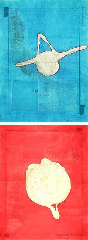 Autor/a: Ángel Fernández Borrué, Título: Abstracción díptico, Año: 1999-2000, Técnica: Acuarela y lápiz compuesto, Medidas: 70 cm x 50 cm.
