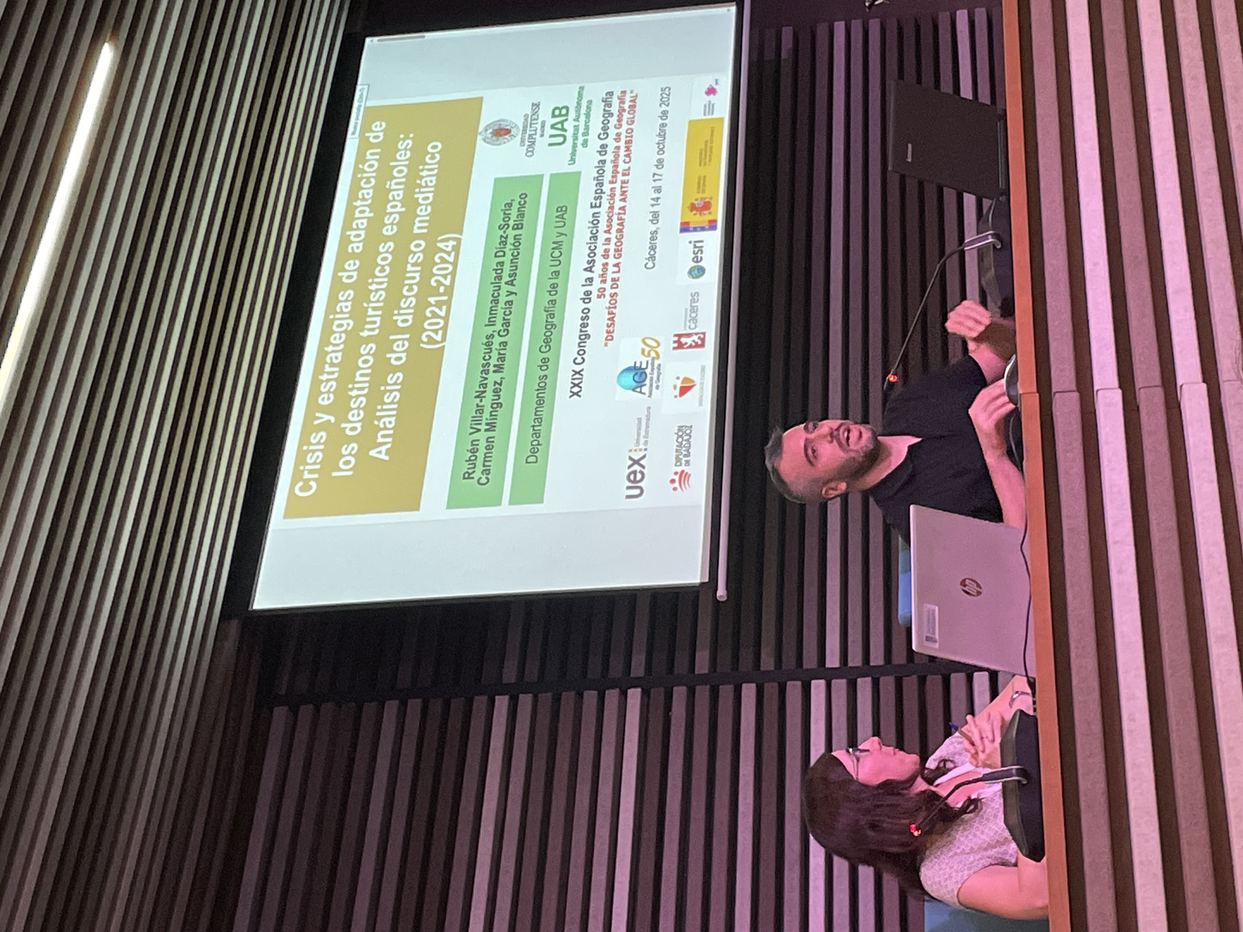 Villar Navascués, R.; Díaz Soria, I.; Mínguez García, C.; García Hernández, M. y Blanco Romero, A. (2025), "Crisis y estrategias de adaptación de los destinos turísticos españoles: análisis del discurso mediático". En XXIX Congreso de la Asociación Española de Geografía, Cáceres, del 14 al 17 de octubre de 2025.