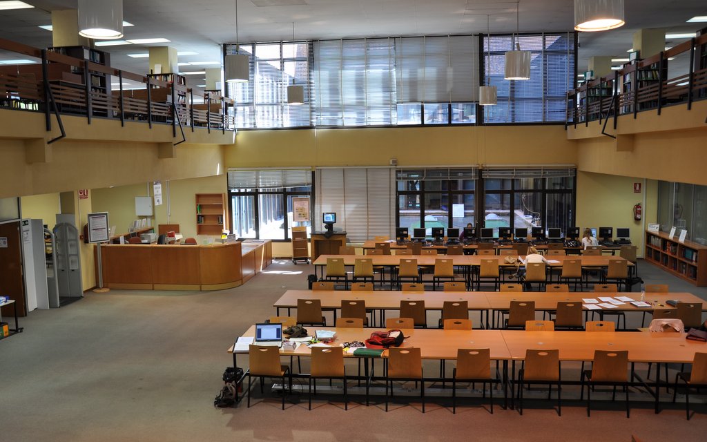La Biblioteca ofrece cerca de 600 puestos distribuidos en distintos espacios para lectura, estudio y trabajo académico, incluyendo docimoteca, salas de lectura, salas de grupo y áreas de descanso, incluyendo la Sala Psilenciosa, un espacio aislado con 360 puestos destinado al estudio individual en silencio.