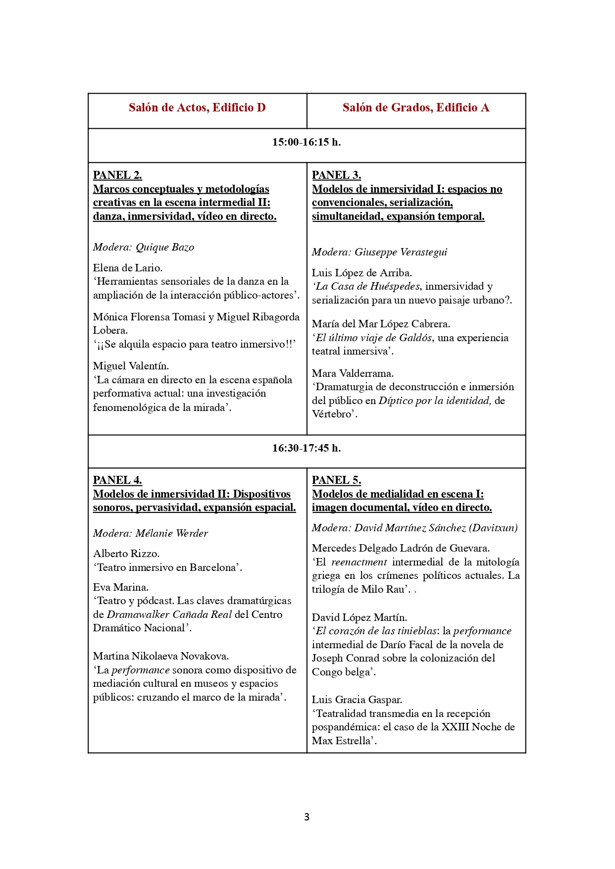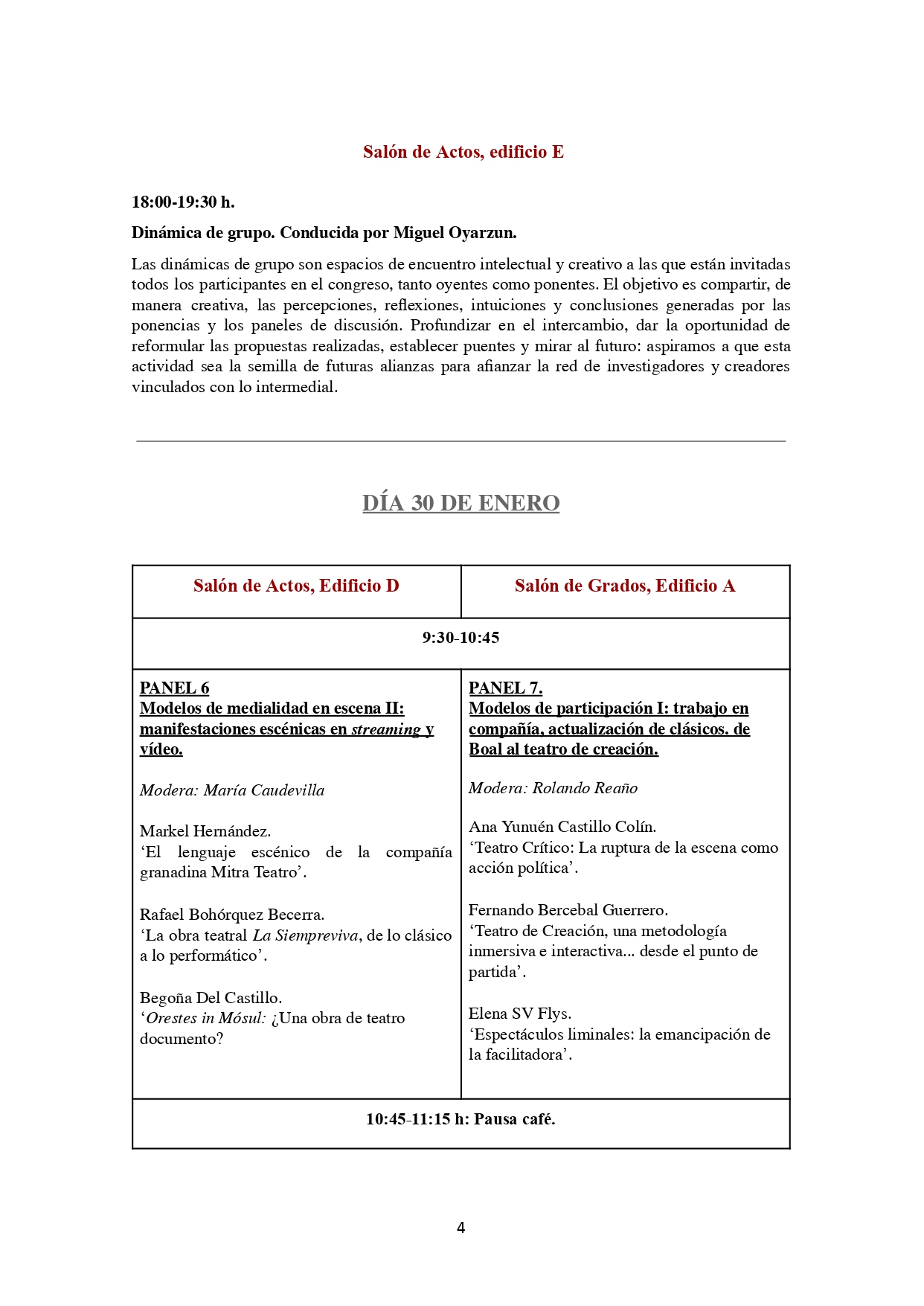 Programa definitivo del Congreso Internacional La escena intermedial