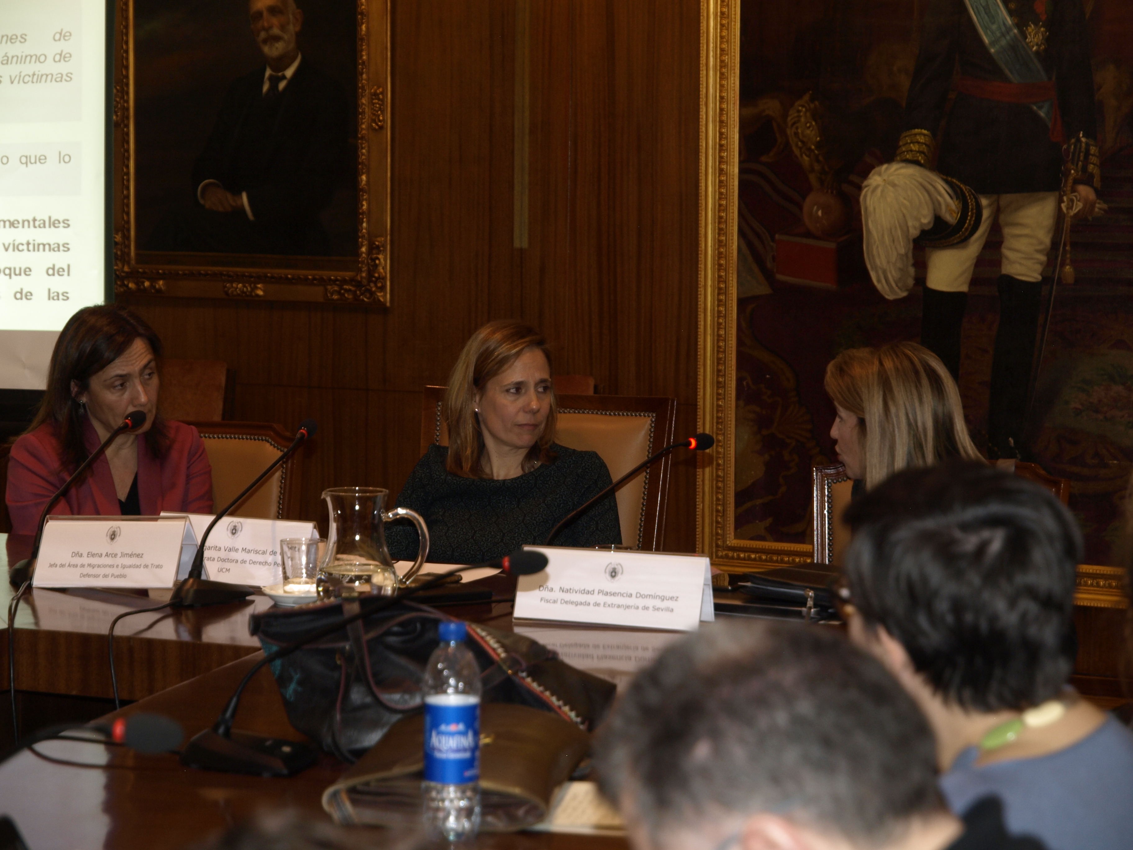 El pasado jueves 21 de marzo de 2019, en el marco de la I Semana contra la trata de seres humanos organizada por el Proyecto I+D+i «Movilidad humana: entre los derechos y la criminalización» (DER2016-74865-R), tuvo lugar una nueva sesión del Seminario permanente IUSMIGRANTE titulada «La víctima de trata como autora de delitos. Problemas aplicativos de la excusa absolutoria del art. 177 bis CP». En esta ocasión participaron como ponentes Dña. Natividad Plasencia Domínguez (Fiscal Delegada de Extranjería de Sevilla) y Dña. Elena Arce Jiménez (Jefa del Área de Migraciones e Igualdad de Trato, Defensor del Pueblo), siendo moderadora la investigadora del proyecto y Prof. Dra. Margarita Valle Mariscal de Gante.