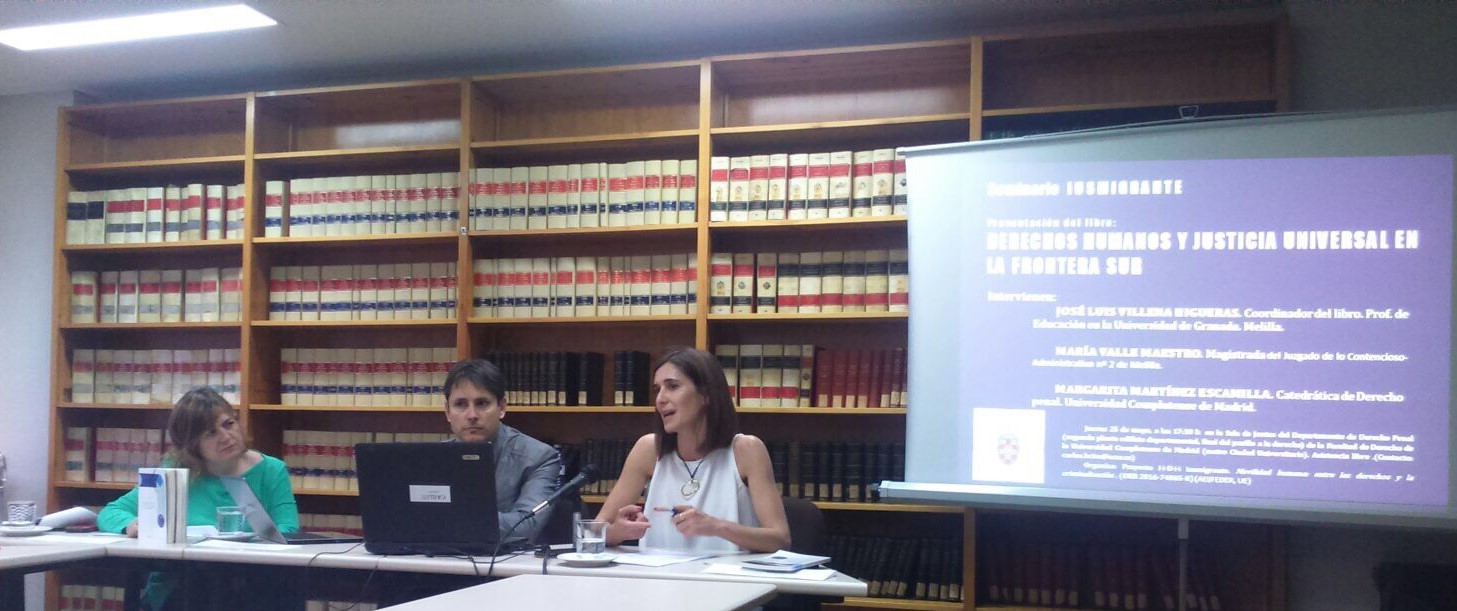 El pasado martes 29 de mayo de 2018 se celebró una nueva sesión del Seminario IUSMIGRANTE en la Sala de Juntas del Departamento de Derecho Procesal y Derecho Penal de la Universidad Complutense de Madrid. En esta jornada intervinieron el activista y miembro de la asociación PRODEIN Melilla, José Palazón Osma, la abogada del Servicio Jesuita de Atención al Migrante y miembro del proyecto María Vieyra Calderoni y la profesora y directora del OCSPI, Elisa García España.
