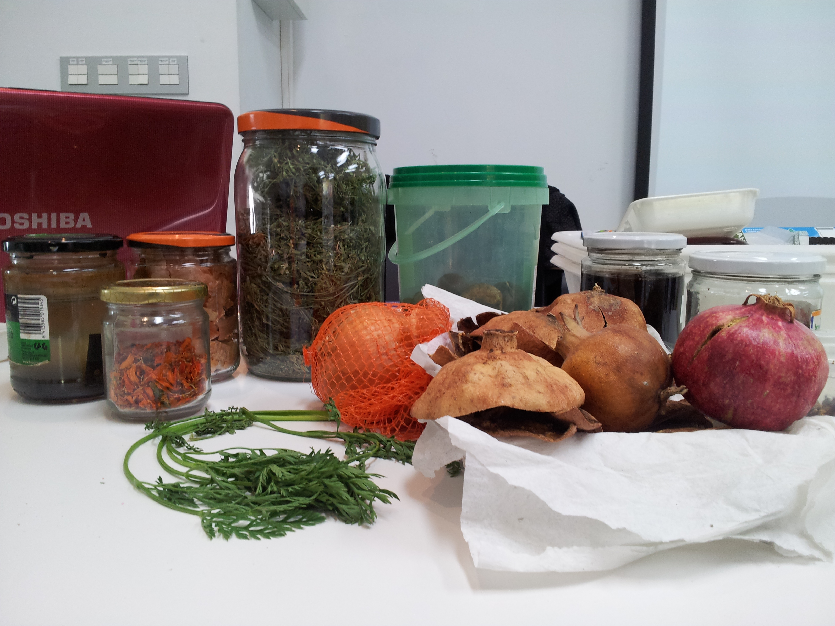 Se realizaron diferentes talleres de plantas cosméticas y tintóreas gracias a Isabel Pérez Ruzafa (UCM) Estela Seriña Ramírez (UCM) Erika Francés Guilarte (UPM) Paz Arraiza Bermúdez Cañete (UPM) y Alfredo Baratas (UCM).