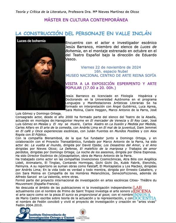 Encuentro con el actor e investigador escénico Jesús Barranco, miembro del elenco de Luces de Bohemia, en el montaje estrenado en octubre en el del Teatro Español bajo la dirección de Eduardo Vasco.