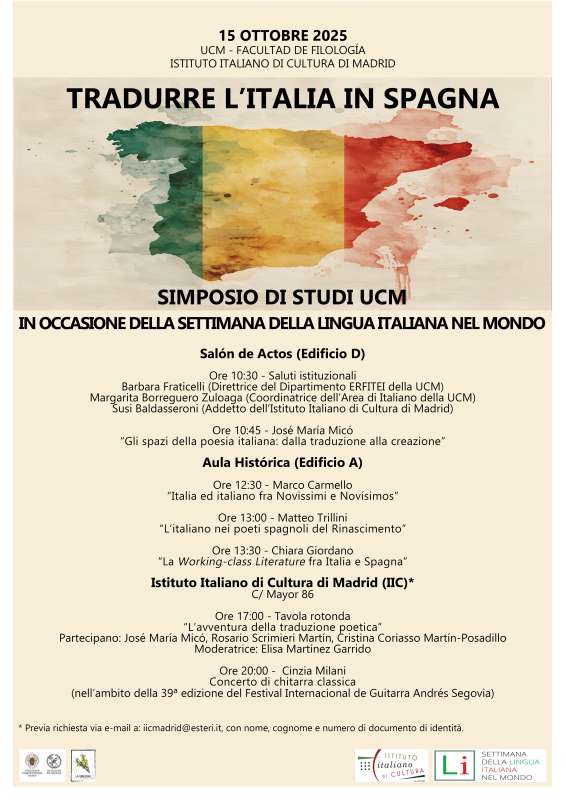 Seminario: «Tradurre l'Italia in Spagna» El seminario, organizado con ocasión de la Semana de la Lengua Italiana en el mundo, tendrá lugar el miércoles 15 de octubre. 25 sep 2025 - 12:00 CET Volver »