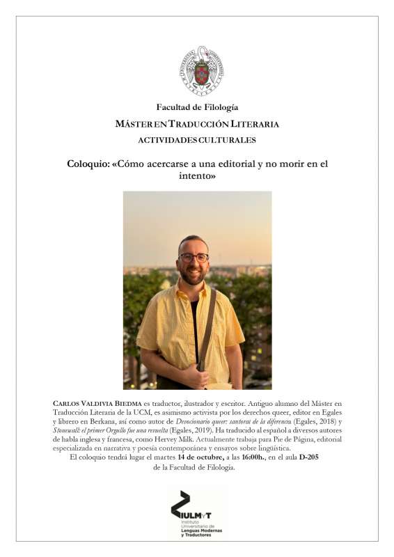 Durante el coloquio, Carlos Valdivia abordará cómo es el proceso de propuesta a una editorial de una traducción, con ejemplos prácticos y algunos trucos para destacar entre las cientos de propuestas que puede recibir un sello a lo largo del año.