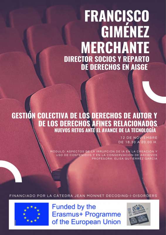 Tras la celebración de la Semana del Patrimonio Audiovisual, tenemos el placer de contar en el máster con la presencia de Francisco Giménez Merchante, Director de Socios y Reparto de Derechos en AISGE, sobre la Gestión colectiva de los derechos de autor y de los derechos afines relacionados y los nuevos retos ante el avance de la inteligencia artificial. AISGE es la entidad que gestiona en nuestro país los derechos de propiedad intelectual de artistas intérpretes o ejecutantes del ámbito audiovisual. Tal clase magistral tendrá lugar el 12 de noviembre, en la asignatura Gestión y Legislación sobre Patrimonio, dentro del módulo Aspectos de la irrupción de IA en la creación y uso de contenidos y en la conservación de archivos, de la mano de la profesora Elisa Gutiérrez García, quien imparte la asignatura conjuntamente con Loreto Corredoira y Alfonso.
