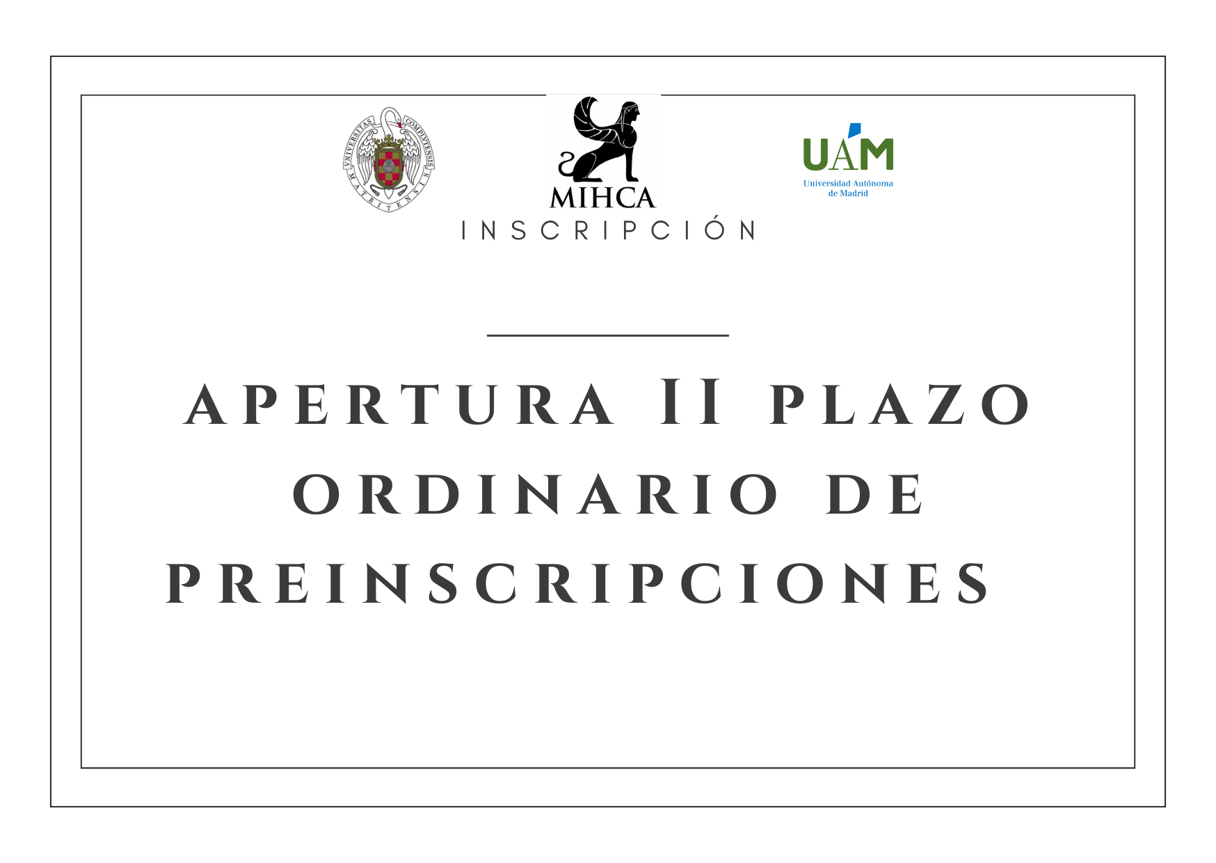 Desde el 22 de abril y hasta el 22 de mayo 2024 se encuentra abierto el II plazo ordinario de preinscripciones al Máster Interuniversitario en Historia y Ciencias de la Antigüedad (año académico 2024/2025).