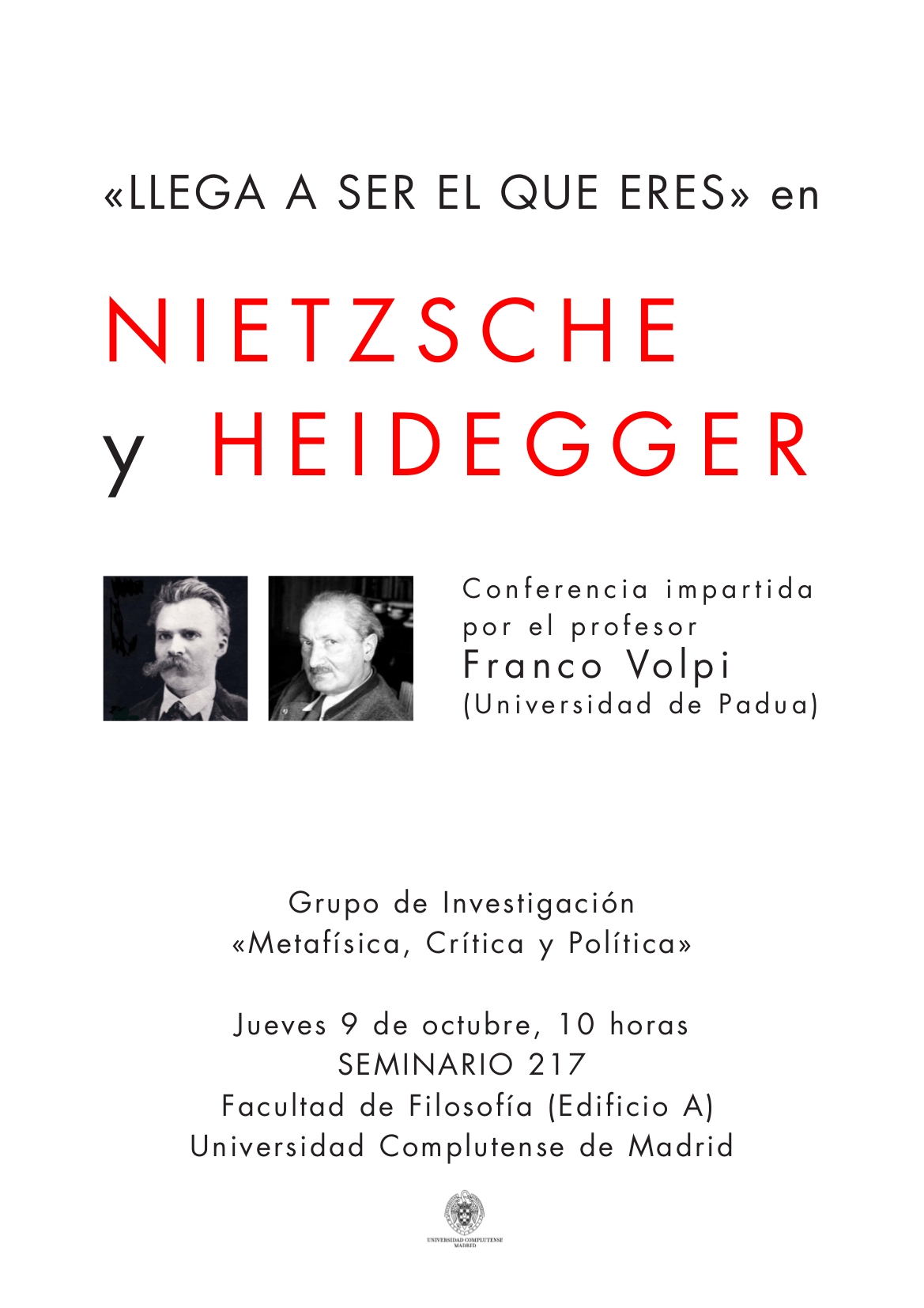 - También destacamos la conferencia que impartió el profesor de la Universidad de Padua Franco Volpi bajo el título “Llegar a ser el que eres en Nietzsche y Heidegger”.