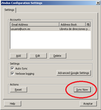 Cliquearemos sobre el botón Add para crear una nueva cuenta de sincronización. Con lo que nos aparecerá la Pantalla New Account.