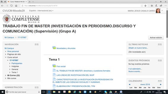 en el máster cuentan con salas de posgrado para los seminarios. Estas salas están dotadas de recursos tecnológicos (audiovisuales y conexión a la red) suficientes para las actividades que en ellas se desarrollen. El Trabajo Fin de Máster se defiende en la Sala de Posgrado del Departamento de Periodismo I, lugar dotado con ordenador, proyector, conexión a red, medios audiovisuales, con espacio para el estudiante que defiende su TFM y para unos 20 oyentes ya que la defensa es pública.