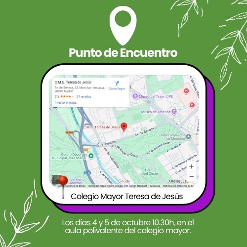 Esta actividad es abierta a todos (estudiantes de Grado como de Posgrado de la UCM, residentes de los Colegios Mayores adscritos y vecinos de los barrios de Madrid, dentro o no del tejido asociativo vecinal).