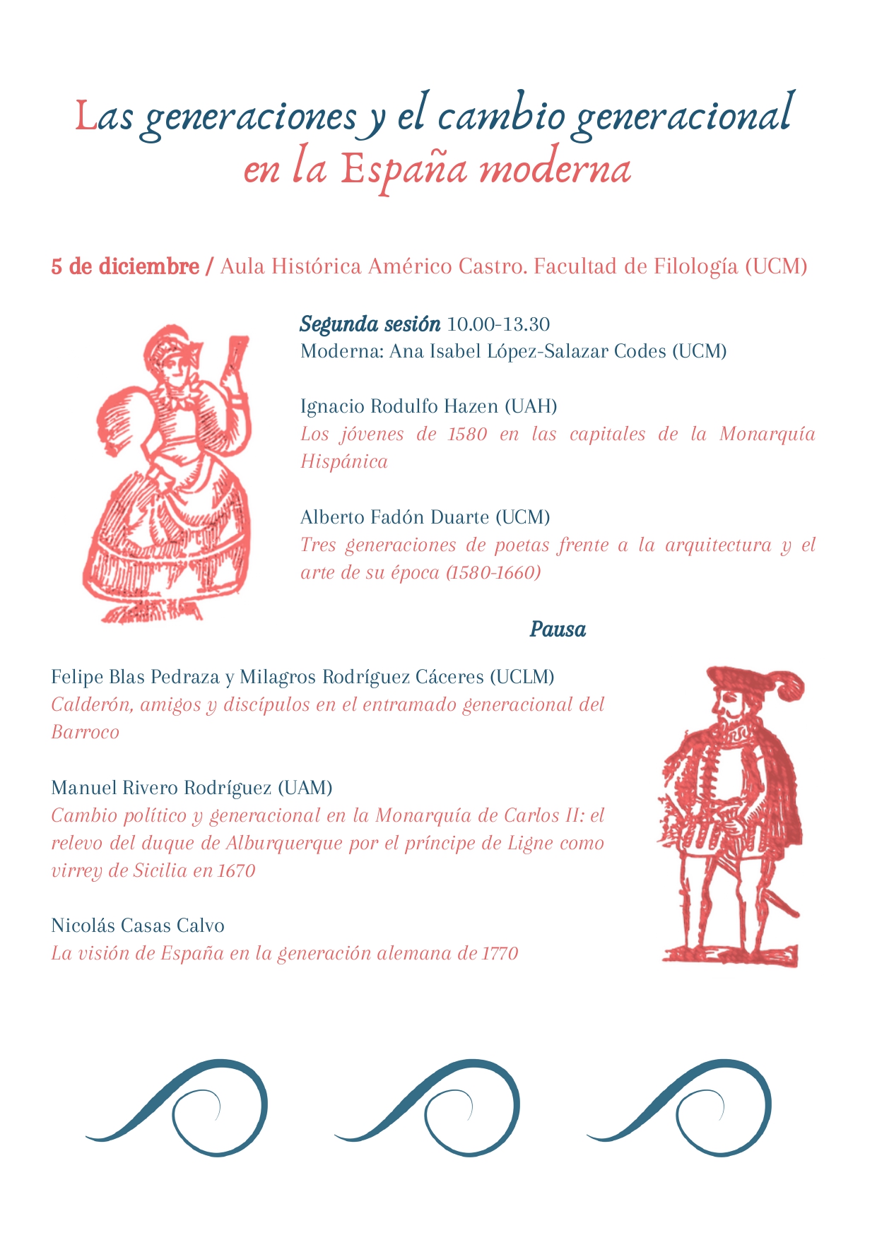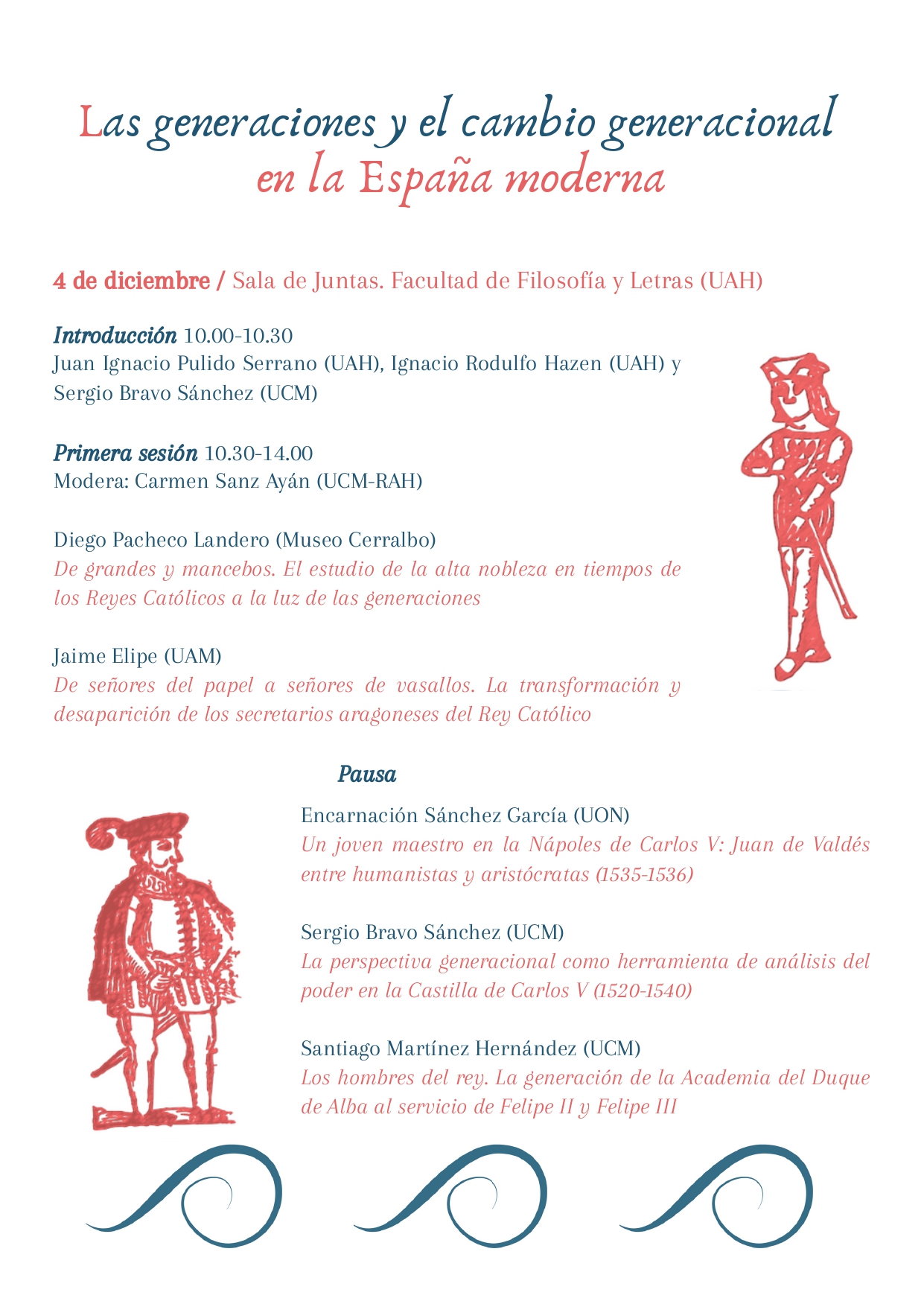 Los días 4 y 5 de diciembre tendrá lugar el seminario Las generaciones y el cambio generacional en la España moderna, dirigido por Sergio Bravo Sánchez e Ignacio Rodulfo Hazen. Las sesiones se desarrollarán el 4 de diciembre en la Universidad de Alcalá de Henares (Colegio de Málaga), y el 5 de diciembre en la Facultad de Filología A de la UCM.