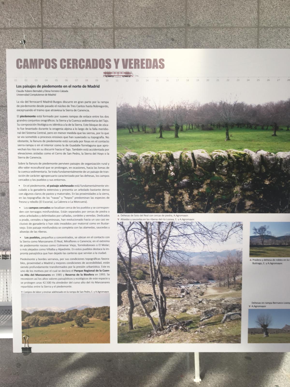 Se trata de uno de los diez corredores de interés patrimonial que forman parte del programa de investigación "Los Conjuntos Patrimoniales de la Comunidad de Madrid como activos turísticos: problemas y oportunidades en perspectiva territorial". Con motivo de estas exposiciones, el público pudo acercarse a conocer en profundidad el corredor ferroviario Madrid-Burgos, una línea ferroviaria que se extiende desde la estación de Chamartín (Madrid) hasta el Puerto de Somosierra en la Comunidad de Madrid y que atraviesa un espacio de fuertes contrastes territoriales y de alto valor patrimonial.