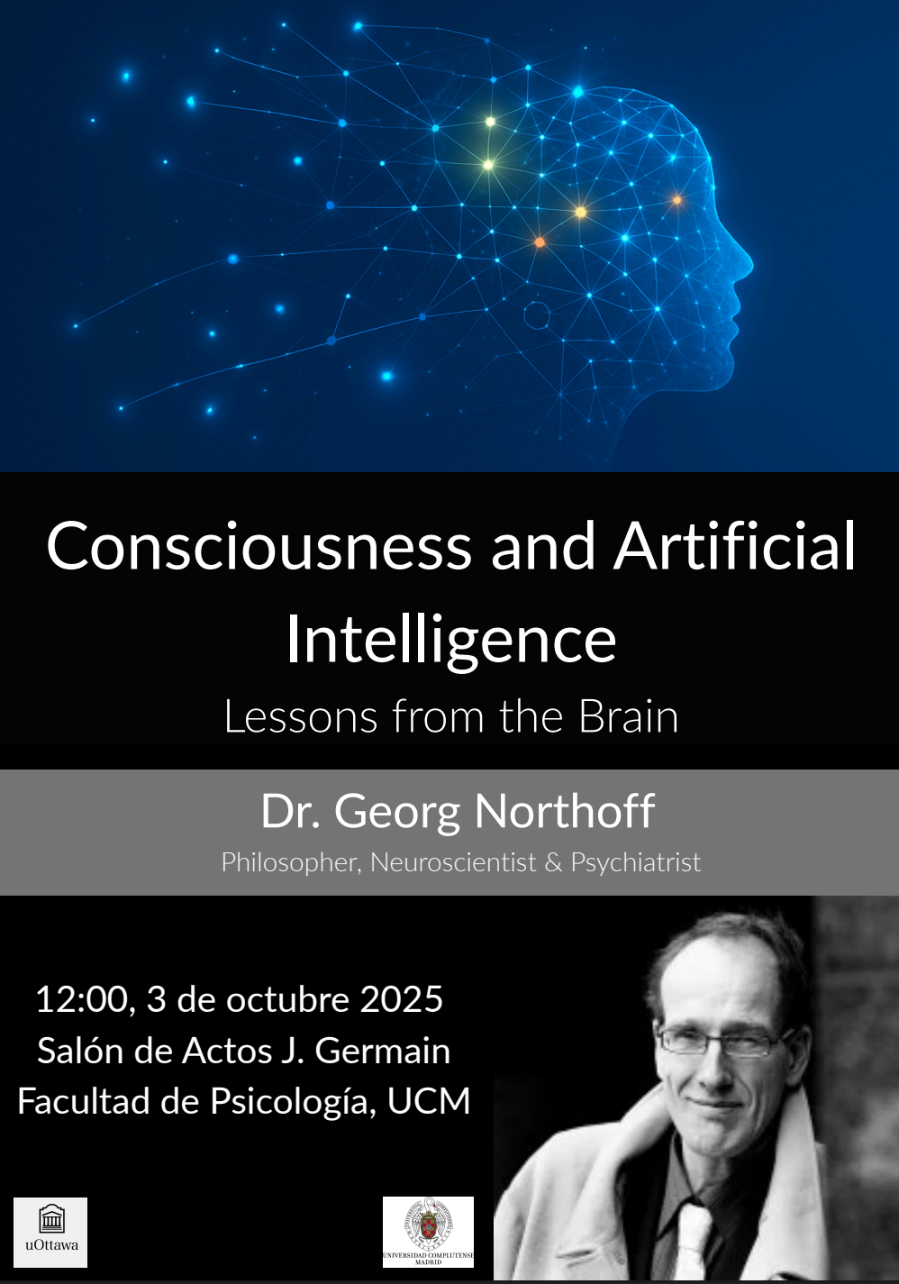 12:00 h Lección magistral – “Consciousness and Artificial Intelligence: Lesson from the Brain”. A cargo de Georg Northoff, filósofo, neurocientífico y psiquiatra. Información completa. Lugar: Salón de Actos “José Germain” (Facultad de Psicología)