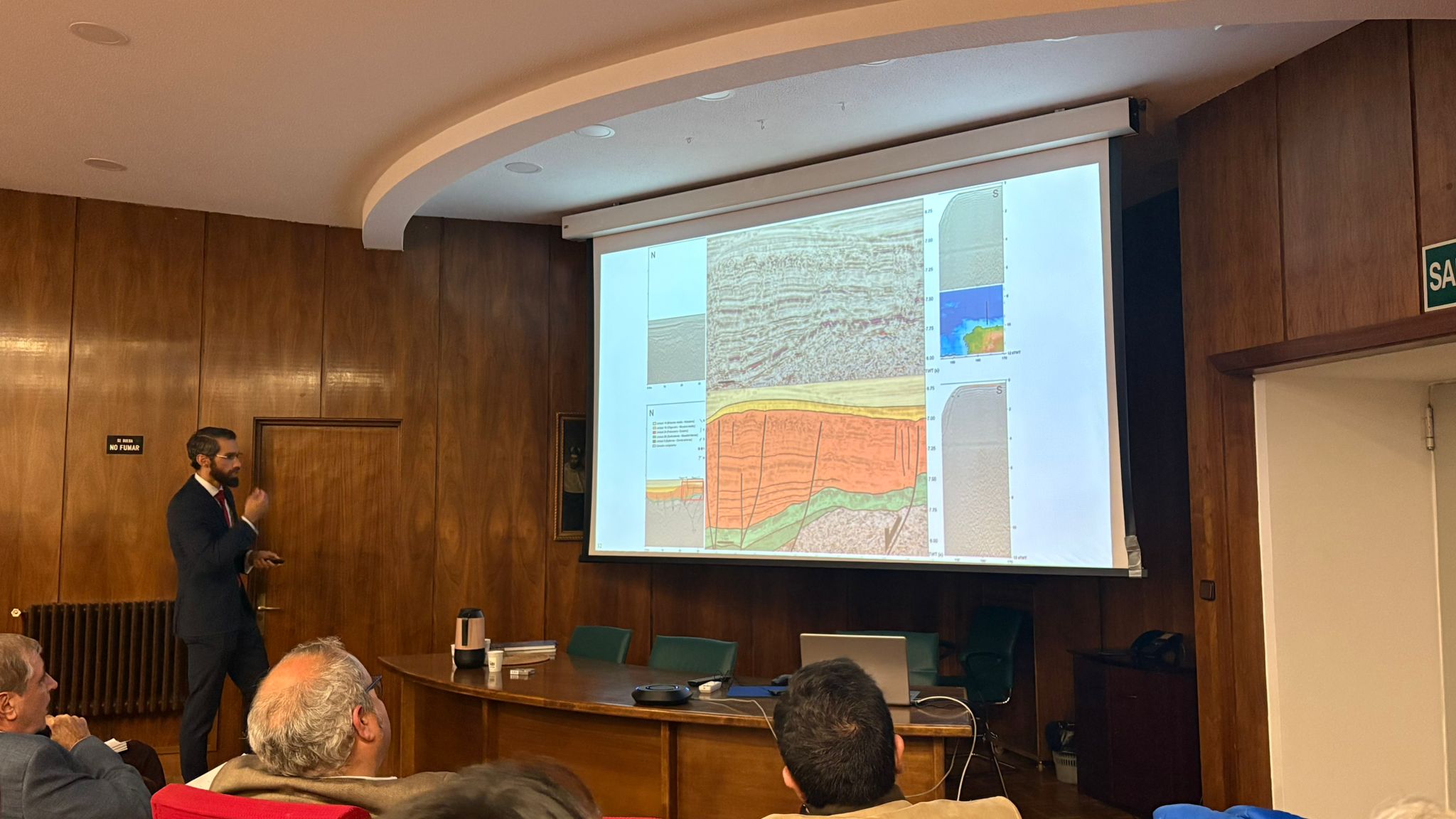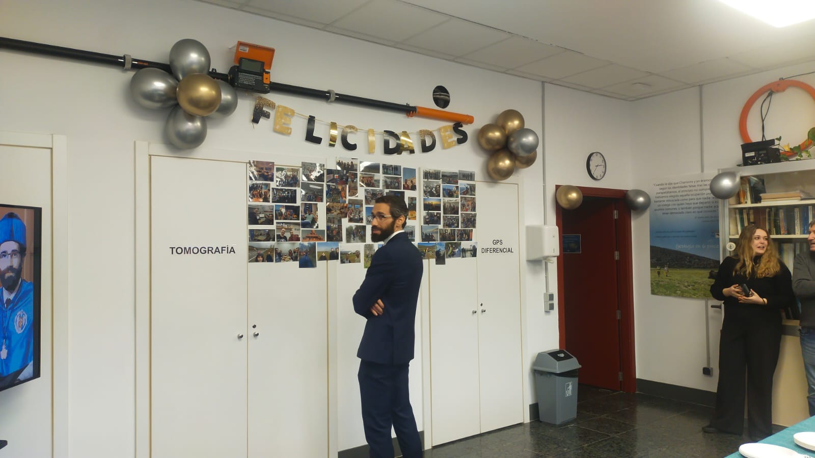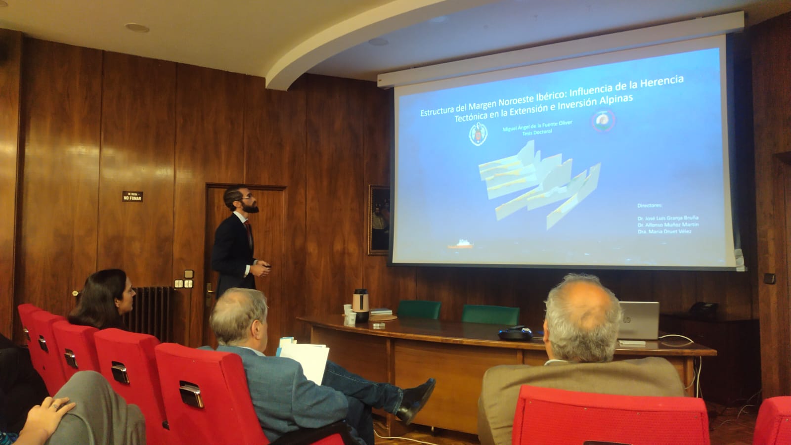 El nuevo Doctor en Ciencias Geológicas por la Universidad Complutense de Madrid presentó su tesis doctoral titulada «Estructura del margen Noroeste Ibérico: influencia de la herencia tectónica en la extensión e inversión alpinas» en la Sala de Juntas de la Facultad de Ciencias Geológicas. La tesis, dirigida por los doctores José Luis Granja Bruña, María Druet Vélez y Alfonso Muñoz Martín, analiza la estructura profunda del margen Noribérico mediante la integración de nuevos datos sísmicos y gravimétricos adquiridos en el marco del proyecto MARIBNO.