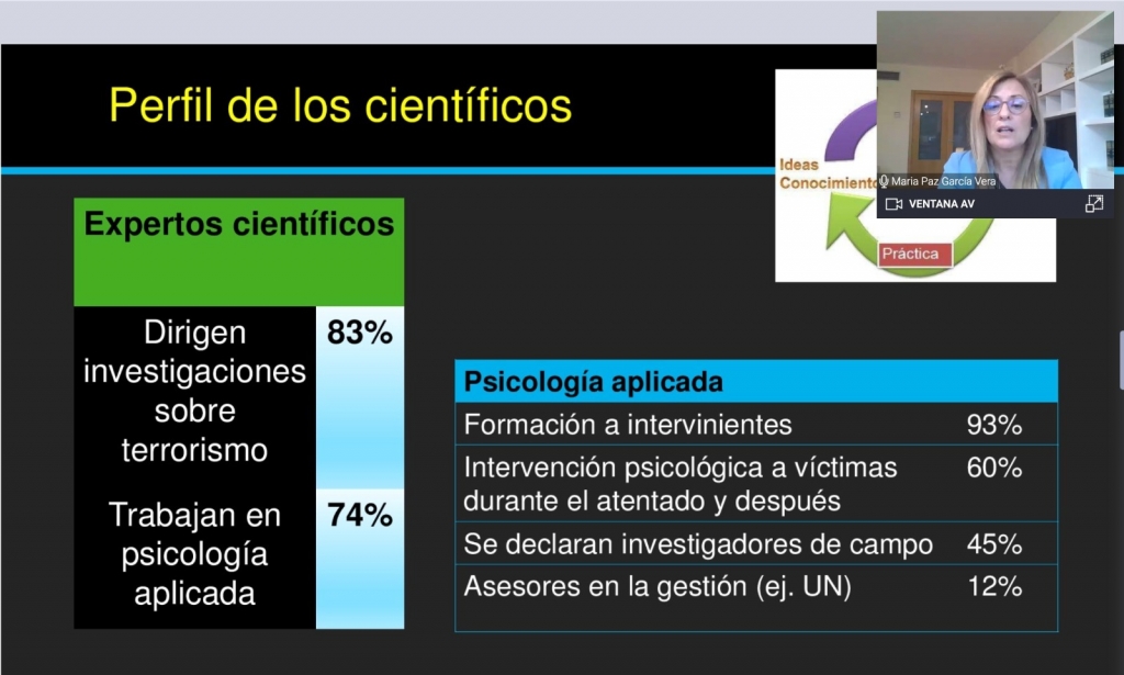 Nuestro equipo de investigación ha presentado en las II Jornadas de Divulgación Científica de la Asociación Víctimas del Terrorismo (AVT), celebradas el pasado 27 de noviembre de 2020 en modalidad virtual de webinar, dada la alerta sanitaria provocada por la COVID-19. los resultados del proyecto de investigación que estamos desarrollando con la AVT desde 2012 y que tiene como objeto la evaluación, diagnóstico y tratamiento psicológicos de las consecuencias psicopatológicas a largo plazo en las víctimas del terrorismo.