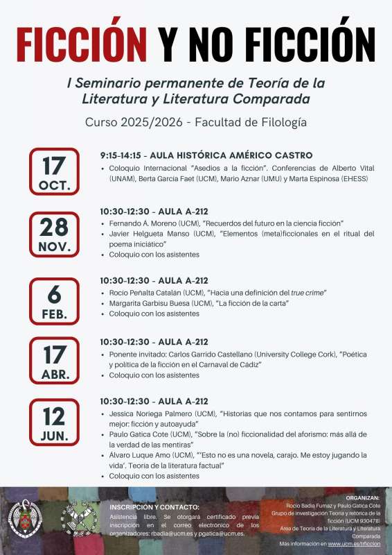 Calendario de sesiones I Seminario permanente de Teoría de la Literatura y Literatura Comparada Curso 2025/2026 26 nov 2025 - 10:52 CET Volver »