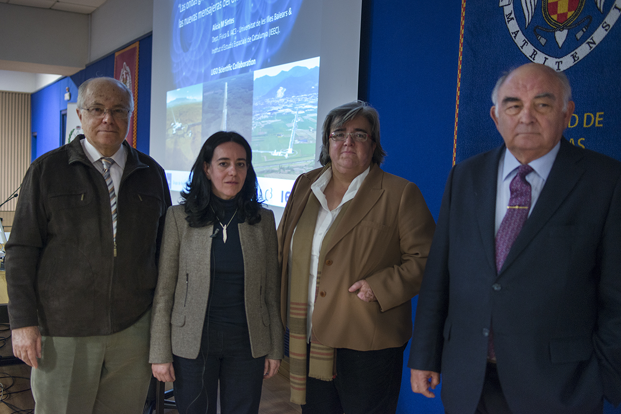 La Facultad de Matemáticas ha acogido una nueva conferencia de la Real Sociedad Española de Física dentro del ciclo Hablemos de Física, con el apoyo de la Fundación Ramón Areces. La ponente ha sido Alicia Magdalena Sintes Olives, profesora de Física Teórica de la Universidad de las Islas Baleares y miembro activo de LIGO, la instalación que ha detectado directamente, y por primera vez, las ondas gravitacionales. Ella es una de las cientos de firmantes del artículo histórico de Physical Review Letters.