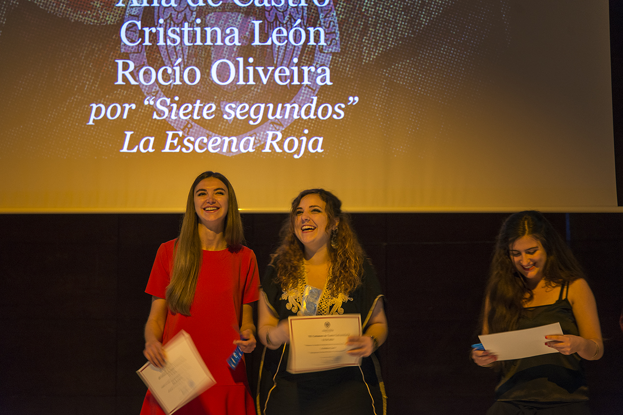 El segundo premio al mejor montaje fue para la obra Siete segundos, de La Escena Roja, obra de Falk Richter, dirigida por Mercedes Ladrón de Guevara. En la recogida de premios, la directora dio un viva al teatro universitario y, sobre todo "al equipazo" con el que ha contado este año. De hecho, el premio a la mejor interpretación femenina se concedió ex aequo a las tres protagonistas de esta pieza teatral: Ana de Castro, Cristina León y Rocío Oliveira.