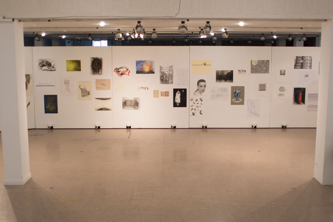 La presentación en la sala quizás puede "parecer simple y aleatoria, pero en realidad ha llevado una jornada entera, ya que ha sido como construir una nueva obra a partir de los trabajos expuestos". Explican las responsable que la instalación se ha pensado según un patrón de claroscuros, porque se quería crear un equilibrio de tal manera que se han colocado las obras de trazo más fuerte debajo y arriba las de trazo más delicado, de tal manera que "todos los paneles componen una continuidad única como si fuese un gran cuadro abstracto".