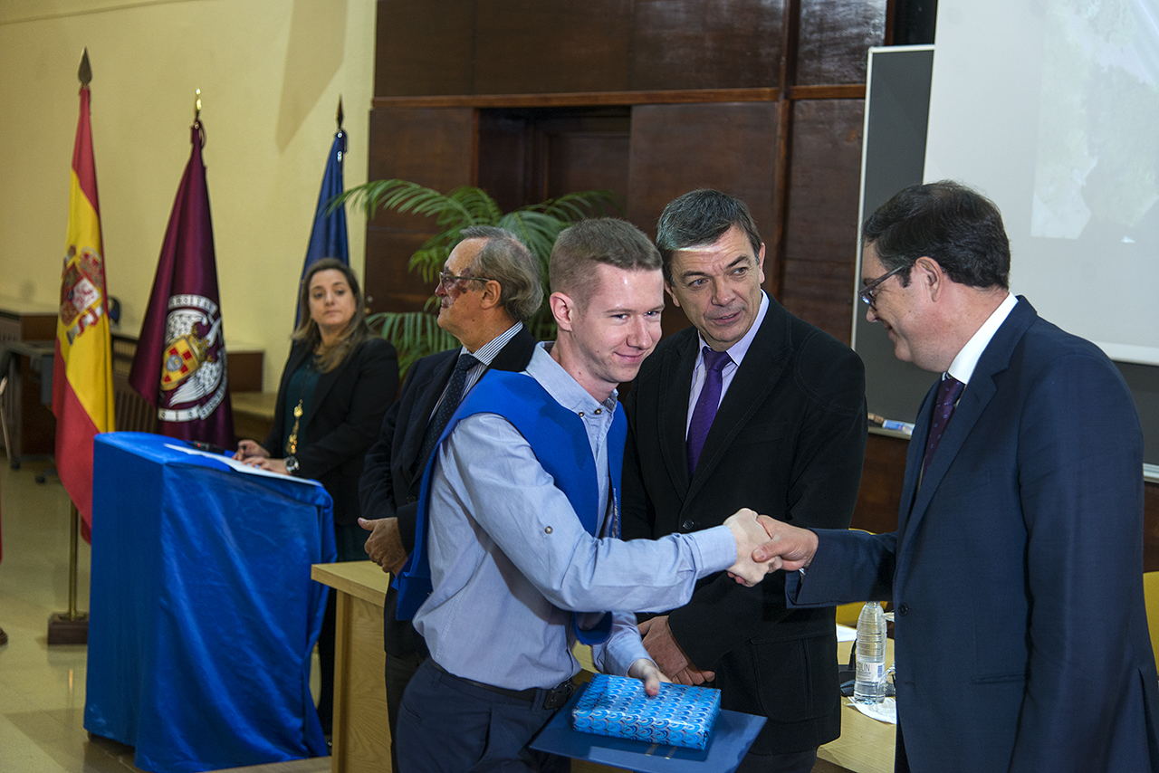 En el acto académico de San Alberto Magno se imponen las becas de la Facultad a los premios extraordinarios de grado y doctorado del curso 2014-2015 y se entregan las acreditaciones a los alumnos con mejor expediente del curso 2015-2016. El rector les quiso felicitar y les pidió que sigan siendo un ejemplo de esfuerzo y trabajo, y el decano consideró que son uno de los pocos ejemplos en los que se puede aplicar la palabra excelencia.