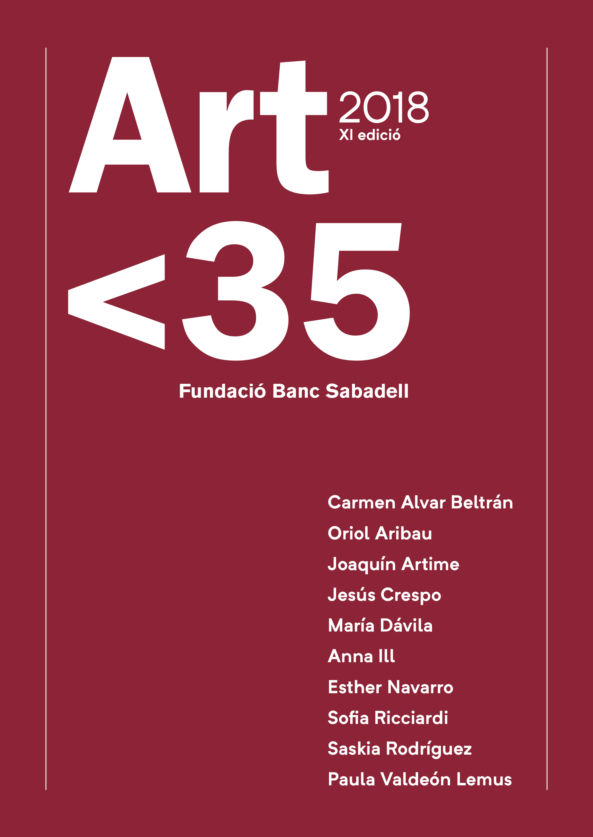 Hasta finales de este mes de noviembre se puede visitar, en la sala de exposiciones de la Facultad de Bellas Artes, la muestra de las obras seleccionadas en el concurso Art<35 Fundación Banco Sabadell 2018. Este concurso nació hace ya 11 años a partir de una iniciativa de la Sala Parés, la galería más antigua del Estado español, y cuenta con la organización de la Facultad de Bellas Artes de la Universidad de Barcelona y con la financiación del Banco Sabadell. Joan Antón Maragall, director de la Sala Parés, destaca la composición del jurado del concurso, formada por decanos de cuatro facultades de Bellas Artes (Universidad Complutense, Universidad del País Vasco, Universidad Politécnica de Valencia y Universidad de Barcelona) además de por un amplio elenco artistas, galeristas y representantes de museos como el Museo Nacional Centro de Arte Reina Sofía y el MACBA. Explica Maragall que "el jurado es el que da el nivel a un concurso, y por tanto lo que da el valor a la selección de los artistas". En esta edición de 2018 se han presentado 153 dosieres, de artistas de 14 facultades de Bellas Artes españolas, de los que se han seleccionado diez artistas, entre ellos los complutenses Paula Valdeón y Jesús Crespo.