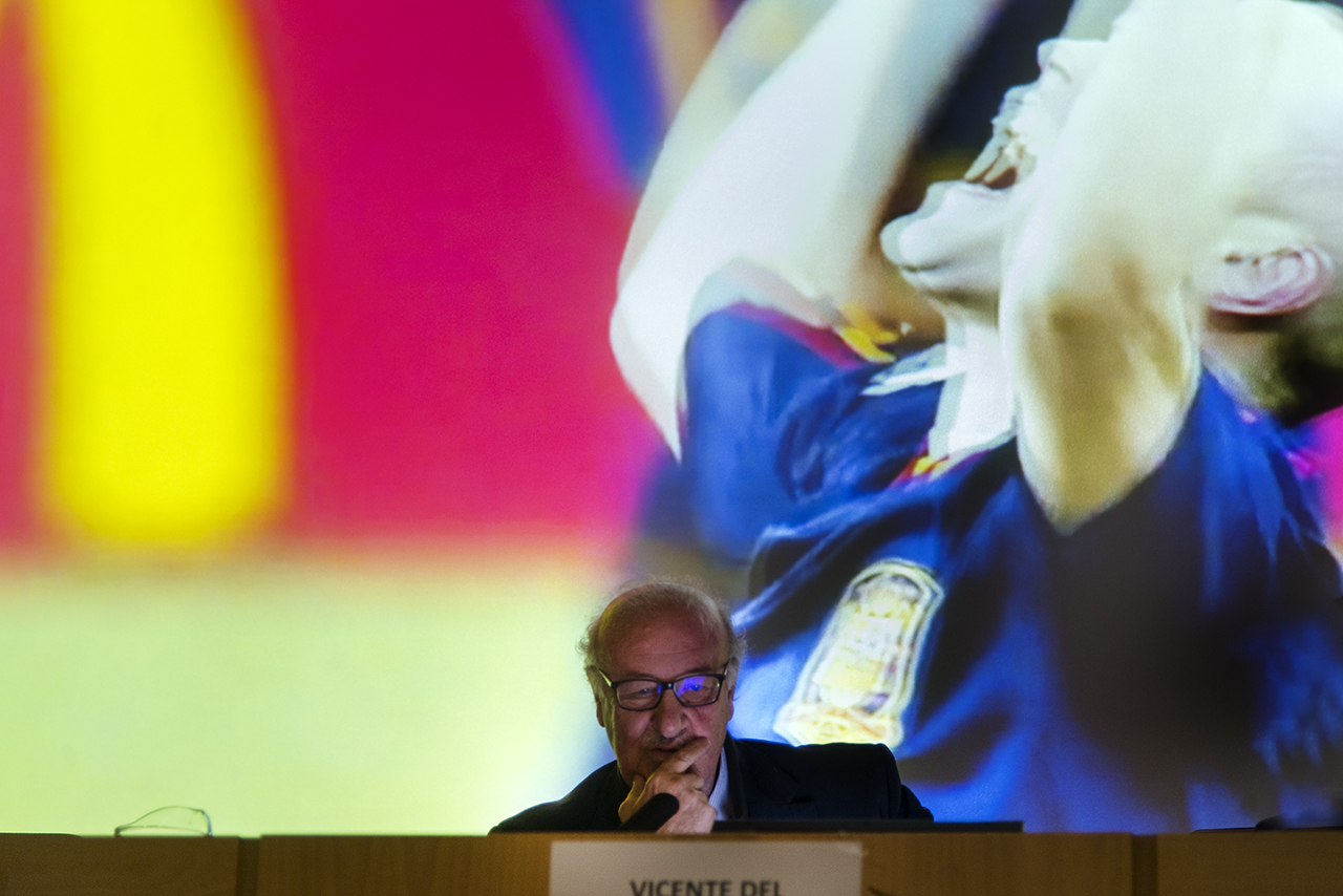 La Asociación de Estudiantes Periodismo Deportivo (AEPD) de la Facultad de Ciencias de la Información cuenta desde este 17 de diciembre con un embajador de excepción, Vicente del Bosque. El que fuera entrenador de la Selección Española de Fútbol entre 2008 y 2016, periodo en el que la selección ganó un Mundial y una Eurocopa, ha acudido a la llamada de los estudiantes de la Universidad Complutense para recoger la placa que le distingue como embajador honorífico de la AEPD-UCM. "Es para mí un placer estar aquí, porque creo que el fútbol, y el deporte en general, debe estar siempre muy presente en la universidad, con los jóvenes", comentó Del Bosque nada más empezar el acto.