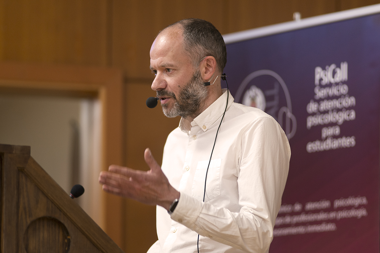 El investigador Simon Bradstreet, presidente de la red Empower, ha impartido, este 7 de junio, la conferencia de inauguración del I Seminario Internacional de la Clínica Universitaria de Psicología (CUP-UCM), que ha servido además como conferencia de clausura del XVI Encuentro de la Asociación Española de Servicios Psicológicos y Psicopedagógicos Universitarios (AESPPU). El Seminario Internacional, de acuerdo con Cristina Larroy, la directora de la (CUP-UCM), pretende tener un carácter bianual, y es también la profesora Larroy quien explica que Empower es "una colaboración internacional que permite el desarrollo de tecnología para la detención de psicosis en atención temprana, para intentar la recuperación y la mejora de la calidad de vida de las personas".